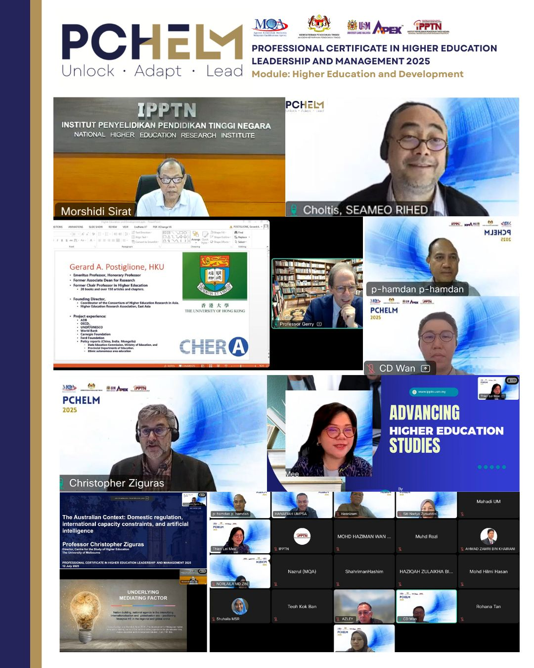 The sessions for Module 1: Higher Education and Development, part of the Professional Certificate in Higher Education Leadership and Management 2025 (PCHELM 2025), were successfully conducted from July 5 to 16, 2025.